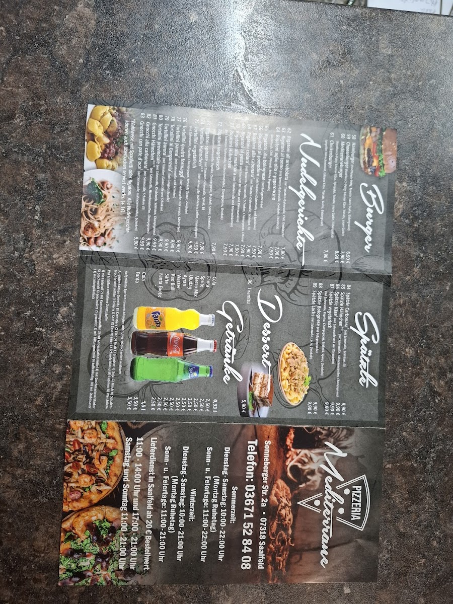 Welcome to Pizzeria Mediterana, nestled on Sonneberger Str. 2A in Saalfeld/Saale, Germany! This inviting eatery has become a local favorite, celebrated for its delicious pizzas that cater to all tastes. From the classic Margherita to creative toppings that satisfy every palate, their menu is a delightful journey through flavors.